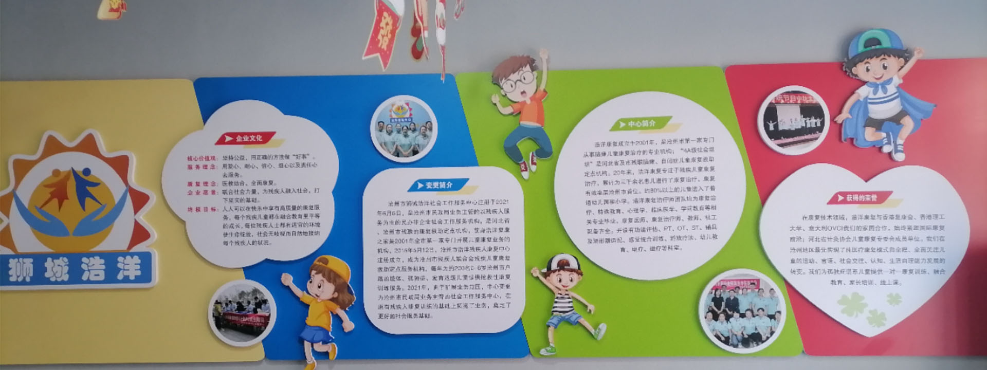 滄州市獅城浩洋社會工作服務(wù)中心注冊于2021年6月6日,是滄州市民政局業(yè)務(wù)主管的以殘疾人服務(wù)為主的民辦非企業(yè)社會工作服務(wù)機構(gòu)。前身浩洋復(fù)康之家是2001年全市第一家專門開展腦癱康復(fù)業(yè)務(wù)的機構(gòu),2015年5月12日,滄州市浩洋殘疾人康復(fù)中心注冊成立,成為滄州市殘疾人聯(lián)合會殘疾兒童康復(fù)救助定點服務(wù)機構(gòu),每年為約200名0-6歲滄州市戶籍的肢體、孤獨癥、發(fā)育遲緩兒童提供搶救性康復(fù)訓(xùn)練服務(wù)。2021年,由于殘聯(lián)不能再作為業(yè)務(wù)員主管單位,中心變更為滄州市民政局業(yè)務(wù)主管的社會工作服務(wù)中心,在原有殘疾人康復(fù)訓(xùn)練的基礎(chǔ)上拓寬了業(yè)務(wù),奠定了更好的社會服務(wù)基礎(chǔ)。